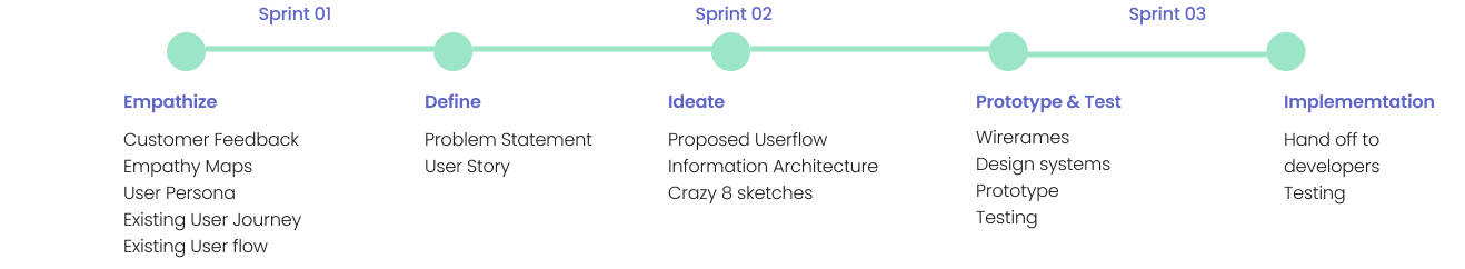 The ideation phase encouraged our team for diverse thinking, free-flowing creativity, and the exploration of multiple potential solutions. In order to bring up the user-centric solution we started with proposing user flow to get the structure of the process, Information architecture for easy navigation and the crazy 8’s for deisgn ideas.