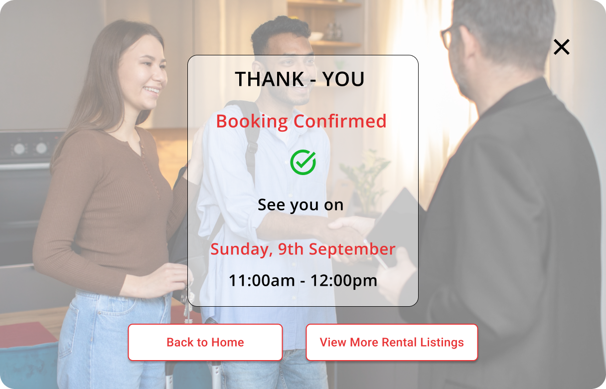 Home > Rental listing > Rental property details > Book to view Property > Confirm dates > Booking confirmed